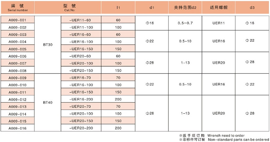 BT-UER高速銑刀柄