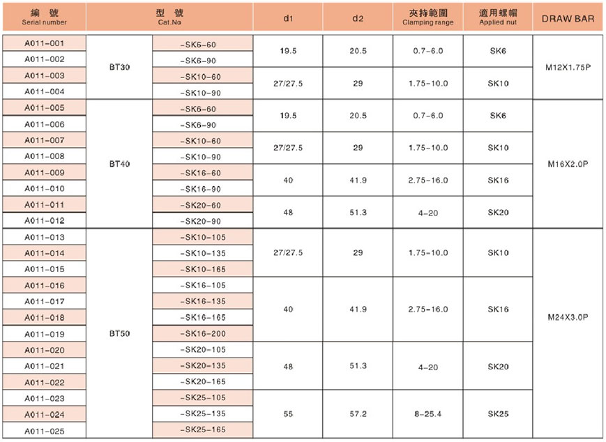 BT-ER銑刀柄
